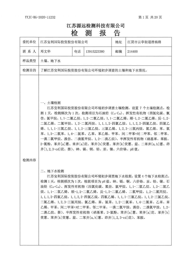 寶利國際2020年土壤檢測報告