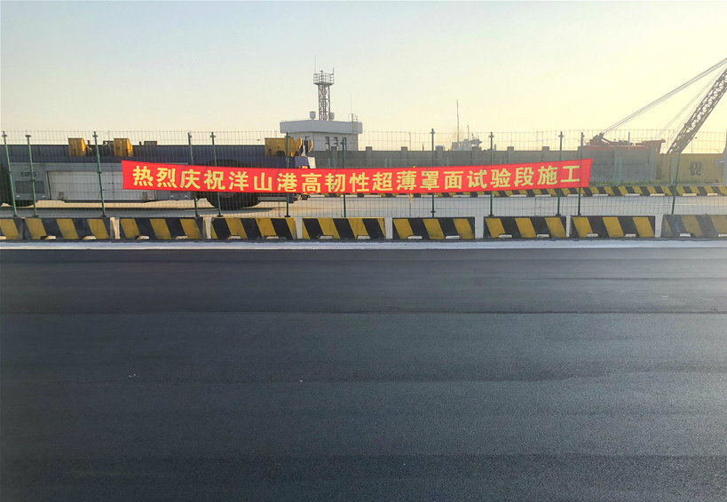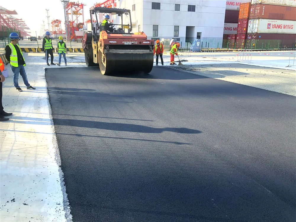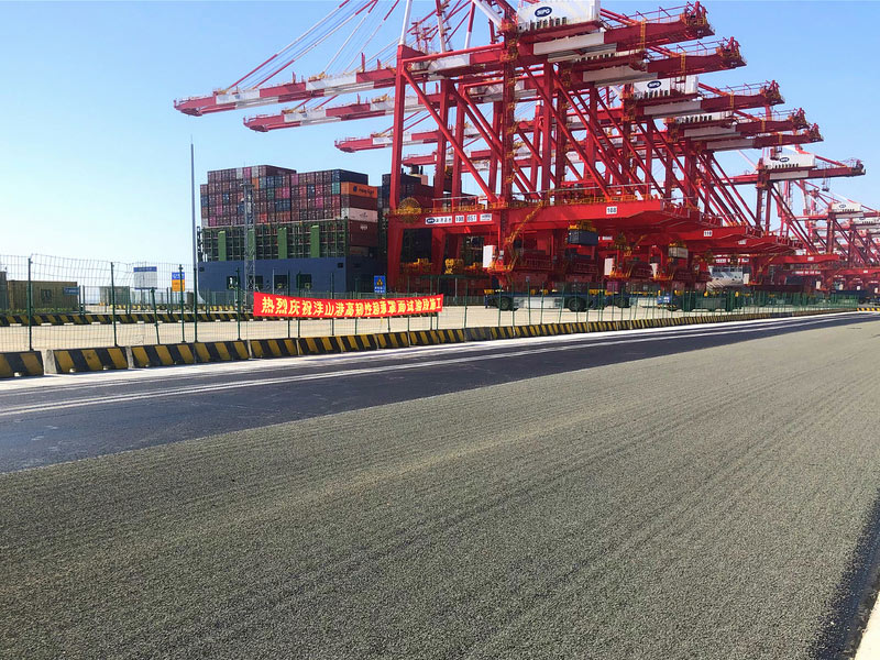 針對路洋山深水港的路面特性,寶利百世路改性瀝青系列產(chǎn)品——百世路®高韌改性瀝青于11月6日在洋山港順利完成試驗段鋪裝。
